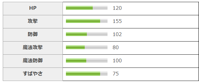 すばやさは見た目に反して遅く、物理アタッカータイプとなっています。