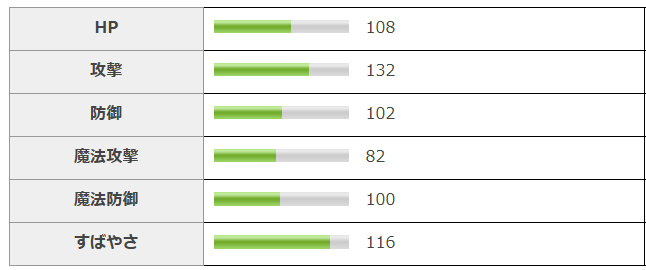 全体的なステータスは平均以上という感じ。