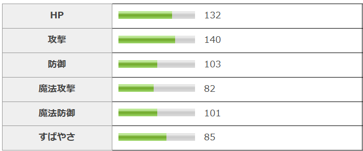 物理攻撃力は高めで、防御・HPも高いので、殴り合いに使えますね。