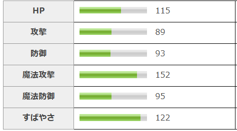 魔法攻撃力が高く、すばやさも15%上昇キャラの中では早いですね。